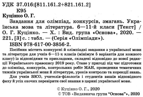 куцінко українська мова і література 6 - 11 клас завдання для олімпіад конкурсів змагань