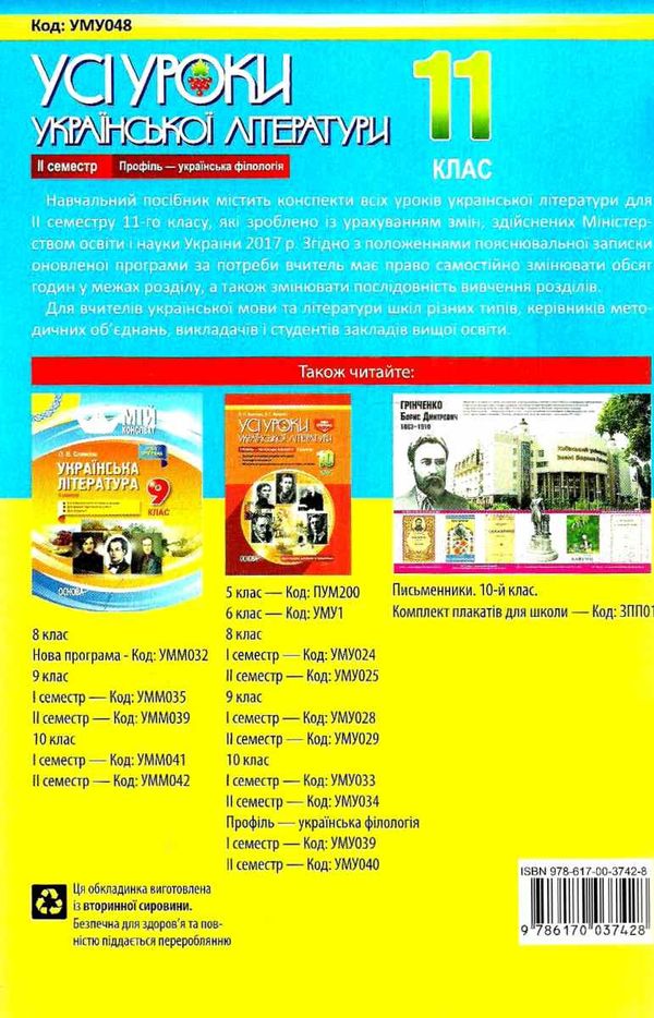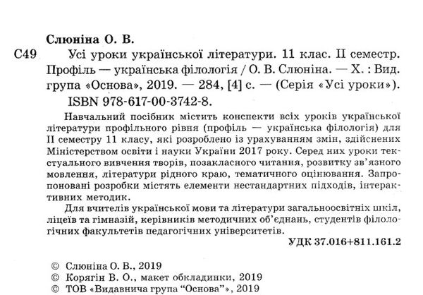 слюніна українська література 11 клас 2 семестр усі уроки профіль+українська філологія книга