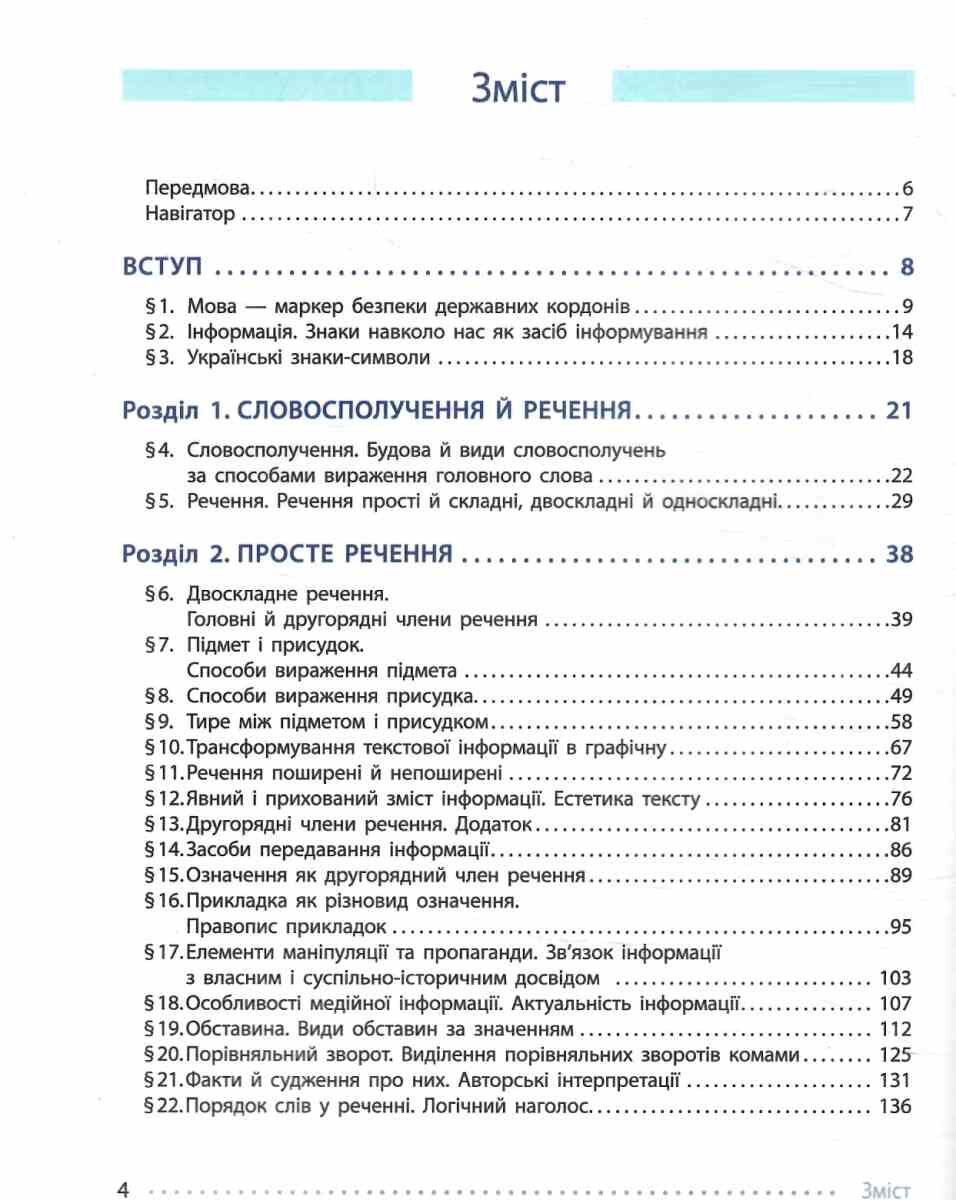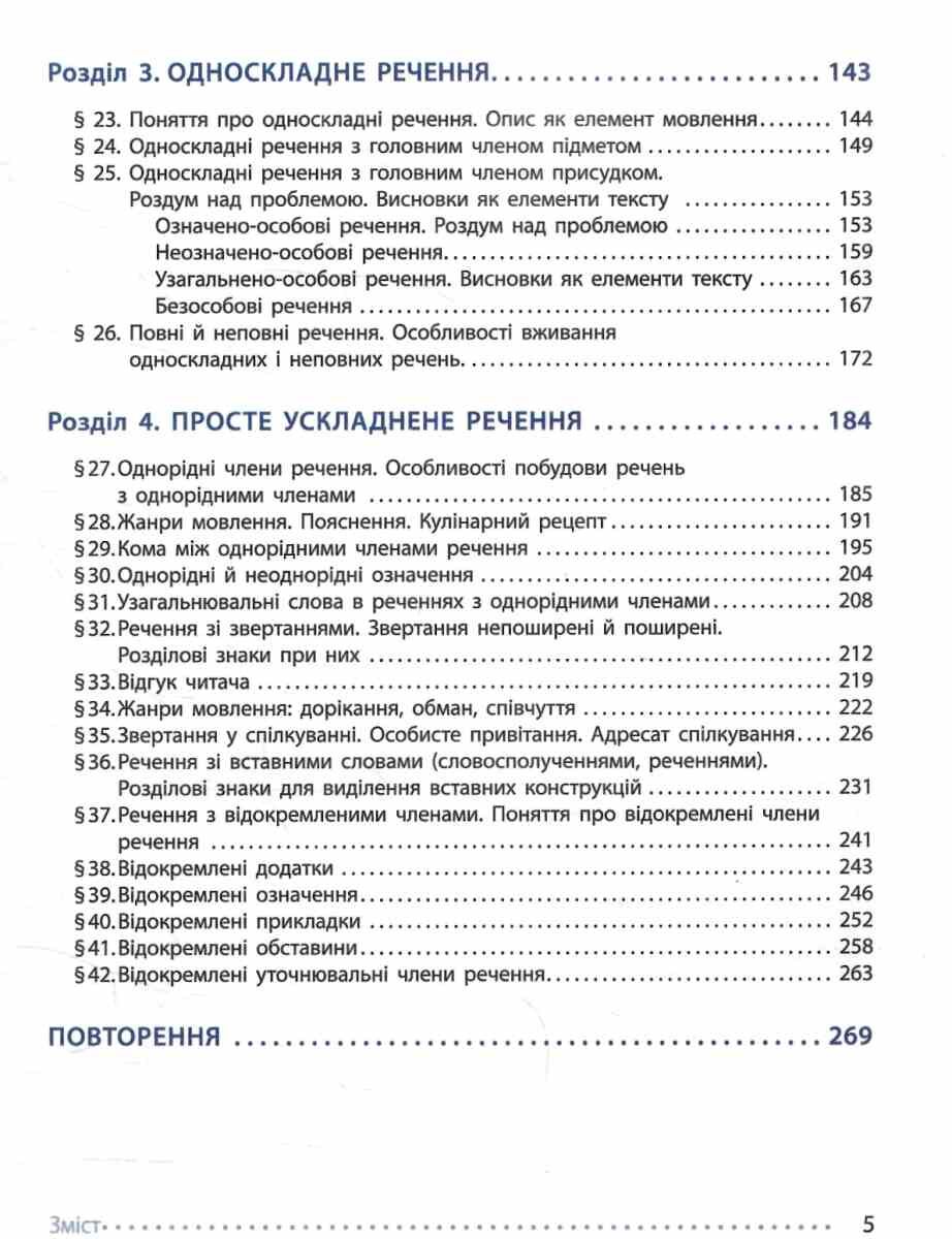 В основі підручника — збалансоване поєднання доступно викладеної нової інформації про мову із активним залученням уже здобутих знань і самостійних міркувань учнів та учениць. Вправи варіюються від простих на закріплення нових правил до творчих та дослідницьких. Тексти та завдання дібрані з увагою до зацікавлень відповідної вікової групи. У фокусі підручника — можливості практичного застосування здобутих знань у повсякденні. Видання призначене для учнівства та вчительства закладів загальної середньої освіти.