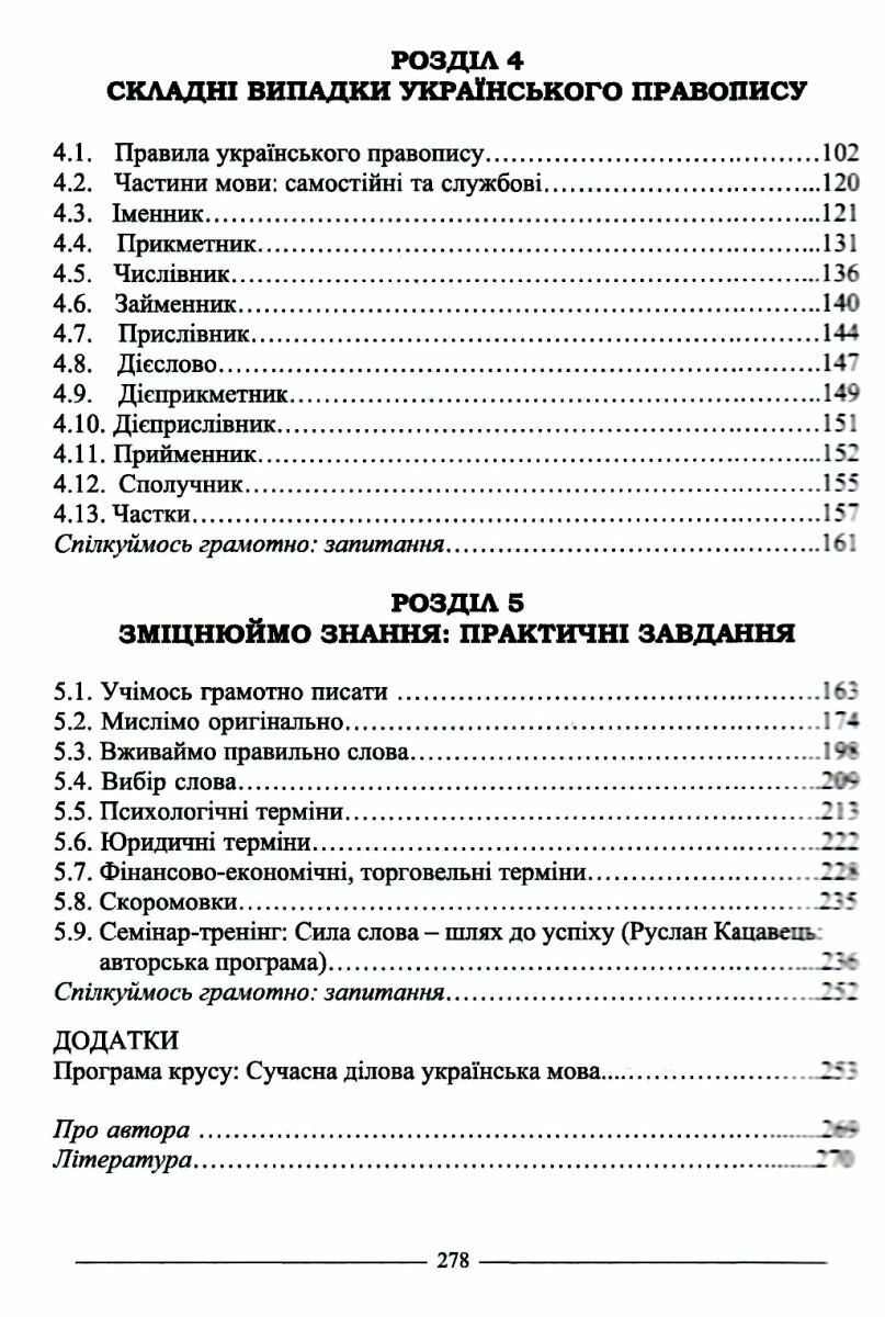 Це − перший в Україні навчальний посібник, у якому використано слушні доповнення із нового Українського правопису. Увагу сконцентровано на тому, що відповідає даному спрямуванню. Видання орієнтує на вивчення української мови − усної і писемної. Виокремлено особливості ділової мови, наголошено на публічному мовленні, міжособистісному спілкуванні, службовій бесіді; підкреслено роль комунікативних якостей та функцій спілкування. Подано мову ділових паперів: правописні норми; мовний етикет; способи вираження логічної послідовності; структуру