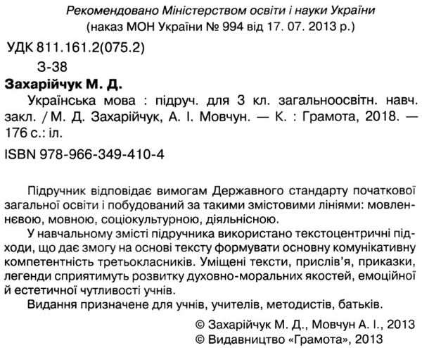 Захарійчук. Українська мова 3 клас Підручник купити "Грамота"