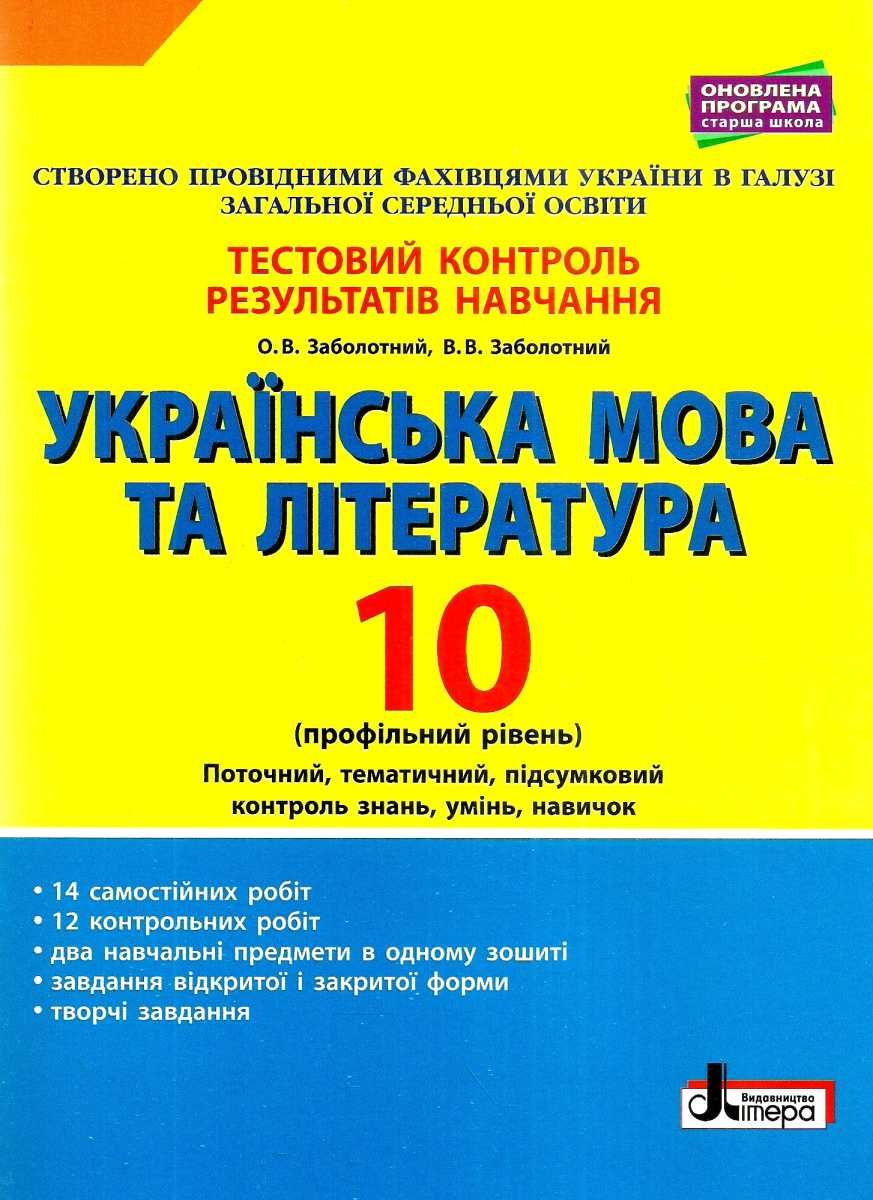 українська мова і література 10 клас тестовий контроль знань профільний рівень