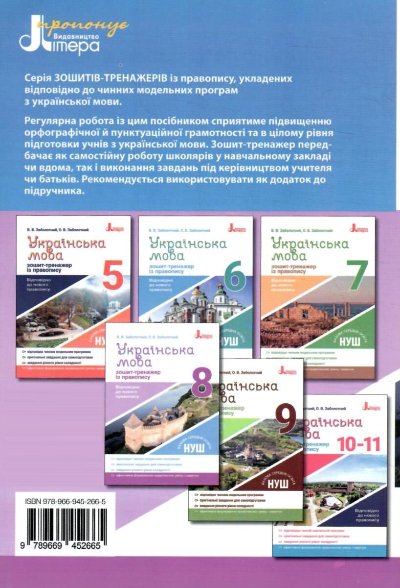 8 клас. Українська мова. Зошит~тренажер з правопису 2025 (Заболотний В.В. Заболотний О.В.), Літера