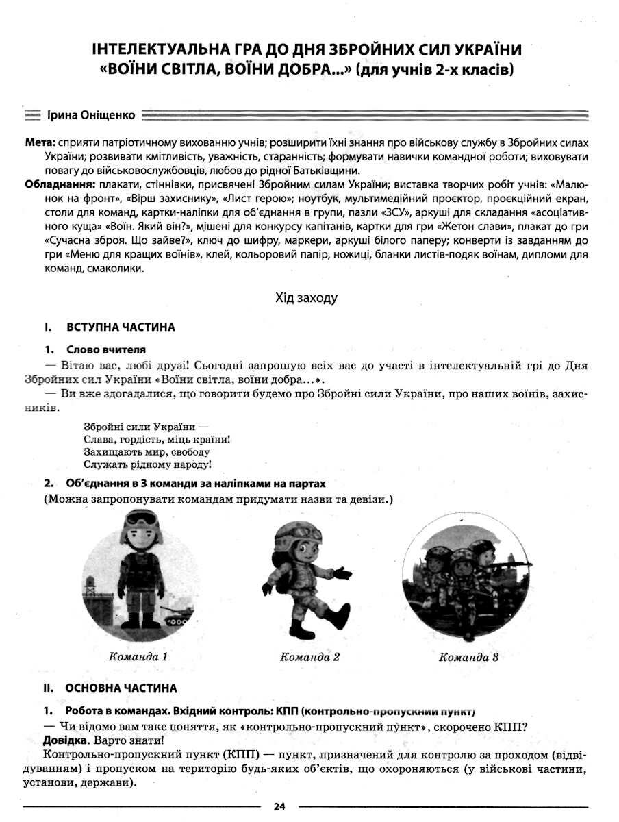 Посібник містить практичний матеріал для підготовки та проведення виховних заходів з національно-патріотичного виховання учнів 1–4-х класів, дібраний відповідно до положень Концепції національно-патріотичного виховання в системі освіти України (наказ МОН України № 527 від 06.06.2022).