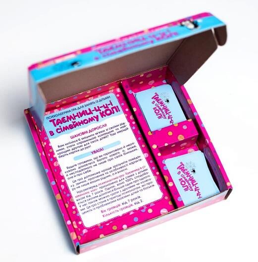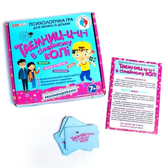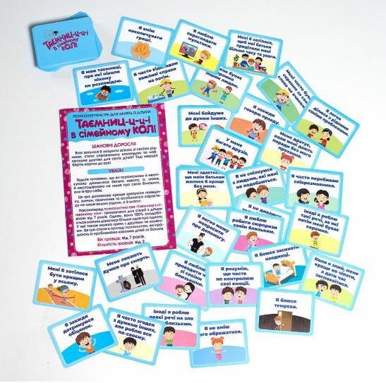 Вам хотілося б зміцнити зв’язок зі своїми рідними, стати справжньою командою та найкращим другом для своїх дітей? Тоді мерщій беріть цю гру! В чому полягає її УНІКАЛЬНІСТЬ і ЦІННІСТЬ? Ви гарантовано й неочікувано дізнаєтесь багато нового, а, може, й несподіваного не лише про своїх близьких, але й про себе. Ця гра допоможе краще зрозуміти поведінку, звички, прагнення та особливості характеру не лише ваших рідних, а й власні. Містить 2 варіанти гри, перша- на виявлення визначальних рис характеру, за якими вас легко пізнати; друга – можливість отримати зворотній зв’язок, якими вас бачить оточення. Гра «Таємниці в сімейному колі» рекомендована фахівцями Інститути сімейної психології та консультування як діагностично-корекційна гра для дітей віком від 7 років, що спрямована на формування розуміння та поваги між членами родини, розвиток довірчих відносин мік батьками і дітьми, висловлювання почуттів та отримання безпечного зворотного зв’язку від учасників гри. Гра призначена для сімей з дітьми віком від 7 років. Однак, вона 100% сподобається охочим дізнатися більше одне про одного. У неї також можна грати з друзями чи колегами. Рекомендуємо використовувати: психологам, які працюють із проблемами взаємин дітей та батьків, батькам дідусям та бабусям. Кількість гравців: 2 і більше. Гра містить: методичні рекомендації, 112 карток.