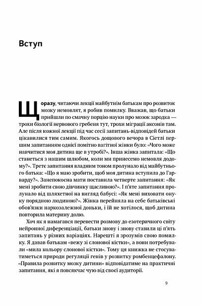 Які дії може виконати жінка під час вагітності, щоб сприяти розвитку своєї дитини? Що має більший вплив на майбутнє дитини — генетика чи виховання? Як подолати роздратування і стрибки в рівні гніву? Джон Медіна, молекулярний біолог і батько двох дітей, зводить на підвалини міфи про розвиток мозку дитини та розкриває справжню природу популярних методів, препаратів та іграшок, що навідно роблять вашу дитину генієм.
