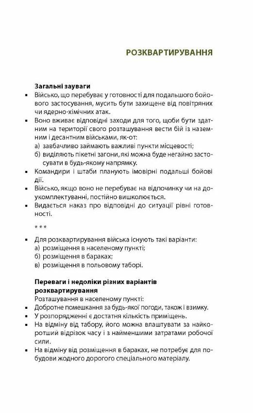 Фундаментальний швейцарський підручник з основ загальновійськового бою від автора «Тотального опору». У ньому детально і доступно описано техніки сучасного бою і командування військовими підрозділами, розвідки і диверсійної роботи, особливості застосування зброї, будування фортифікаційних споруд та інженерних загороджень, правила організації маршу та розквартирування, постачання війська, санітарної служби, військового вишколу тощо. Професійний, але пристрасний текст військового фахівця і патріота має потужний мотиваційний потенціал, а доповнений рисунками, схемами і таблицями, може бути легко засвоєний. Призначається для офіцерів, сержантів, рядових Збройних Сил України, а також усіх, хто хоче належно підготуватися до захисту своєї країни від агресії ворога та збільшити свої шанси на виживання у бою. У цій частині розкрито принципи розквартирування, вартової служби, транспортування та організації маршів, а також основи командування взводом і відділенням, укріплення місцевості, розвідки й убезпечення.