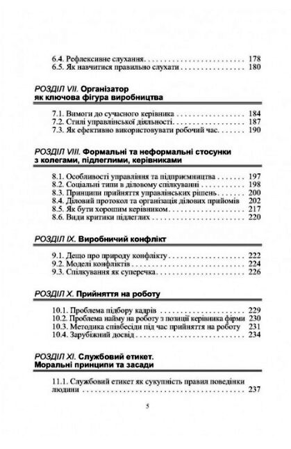 Основи психології та етики спілкування у сфері управління, ділових відносин, наукової організації праці. Широко висвітлені питання спілкування як соціального феномену, функцій спілкування, значення невербального спілкування в ділових стосунках, форм та стилів ділового спілкування, вимог до сучасного керівника, стилів управління, службового етикету, морально-етичних проблем особистості. Розглянуто природу виникнення виробничих конфліктів та способи їх розв’язання. Наведено конкретні приклади щодо організації роботи сучасного менеджера, керівника. Посібник дасть змогу ознайомитися з теорією, методами, методологією та мистецтвом ділового спілкування, управлінської діяльності в сучасних умовах організації виробництва, практично оволодіти відповідними навичками та вміннями.