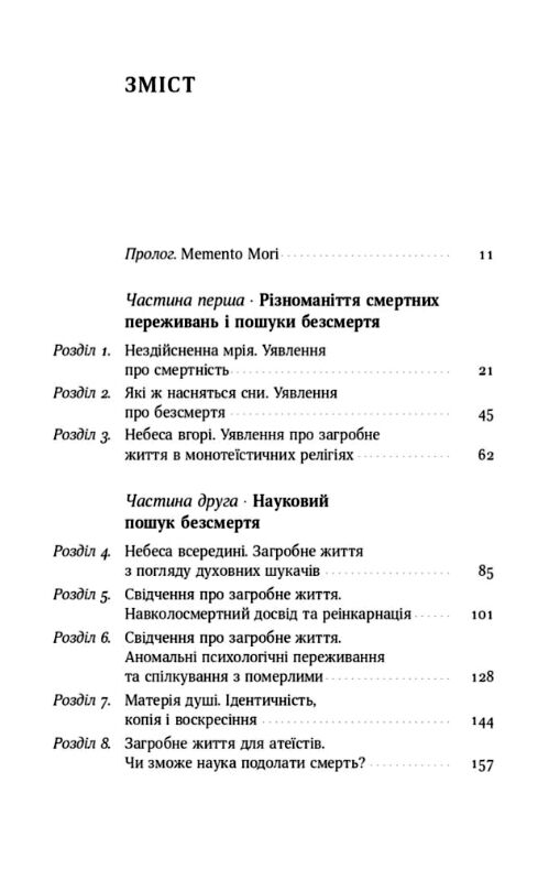 Автор також розглядає вплив релігії на сприйняття смерті та формування вірувань про післясмертя. Він аналізує історичні та культурні контексти, в яких формувалися релігійні доктрини та міфології, що пов'язані зі смертю. Книга допомагає читачеві краще розуміти роль релігії в формуванні світогляду та віровчення людей.