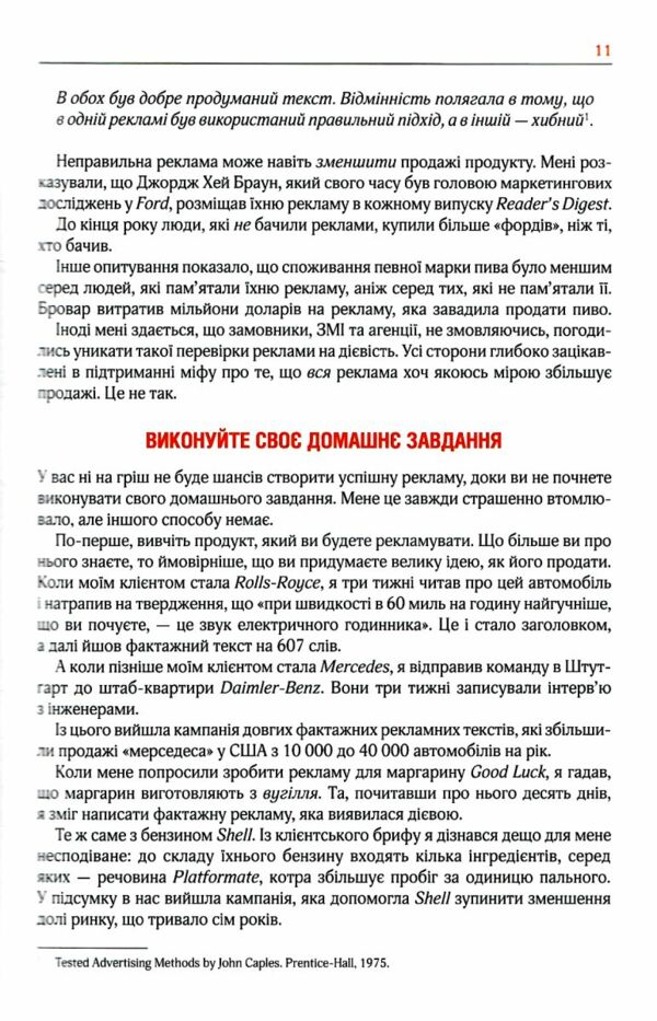 Насправді ви нічого не знаєте про рекламу. Але реклама знає все про нас. Якою зубною щіткою ліпше користуватися і який гаджет варто придбати, чому одні джинси кращі за інші й чому оцей пластир урятує вас не лише від подряпини, а ще й підлатає ваше життя… Так, реклама знає про нас усе. Тож час дізнатися все про неї. Ця книжка — не для читачів, які вважають себе знавцями реклами. Вона для молодих і перспективних — а також для бувалих, які й досі шукають способів удосконалити рівень своїх продажів. Імідж бренда, культ креативності, секрети успішної B2B-реклами, реклама для топ-менеджменту, маркетинг у період економічного спаду, шаблони та стереотипи, тексти, що чіпляють, та ілюстрації, які заманюють, і ще купа всього. Для кожного, хто працює у сфері просування. Тепер вашу рекламу побачить увесь світ!