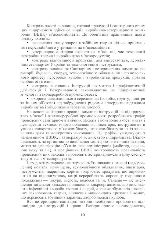 Підручник написано згідно з програмою дисципліни „Основи тваринництва і ветеринарно-санітарна експертиза м’яса та м’ясних продуктів” і вимогам державного стандарту з підготовки фахівців спеціальності „Технологія зберігання, консервування та переробки м’яса”.Метою підручника є дати майбутнім інженерам-технологам теоретичні знання, які пов’язані з випуском нешкідливих для людини м’яса та м’ясних продуктів. Підручник складається з трьох частин: перша – з анатомії і фізіології сільськогосподарських тварин і птиці, в другій частині наводиться основна сировина м’ясопереробної галузі (породний склад, методи розведення, конституція, екстер’єр та кондиція тварин, їх вирощування та відгодівля). Третя частина підручника присвячена вивченню основ епідеміології, промислової санітарії, ветеринарно-санітарному контролю на підприємствах галузі від цеху переробки до виготовлення та зберігання готової продукції.