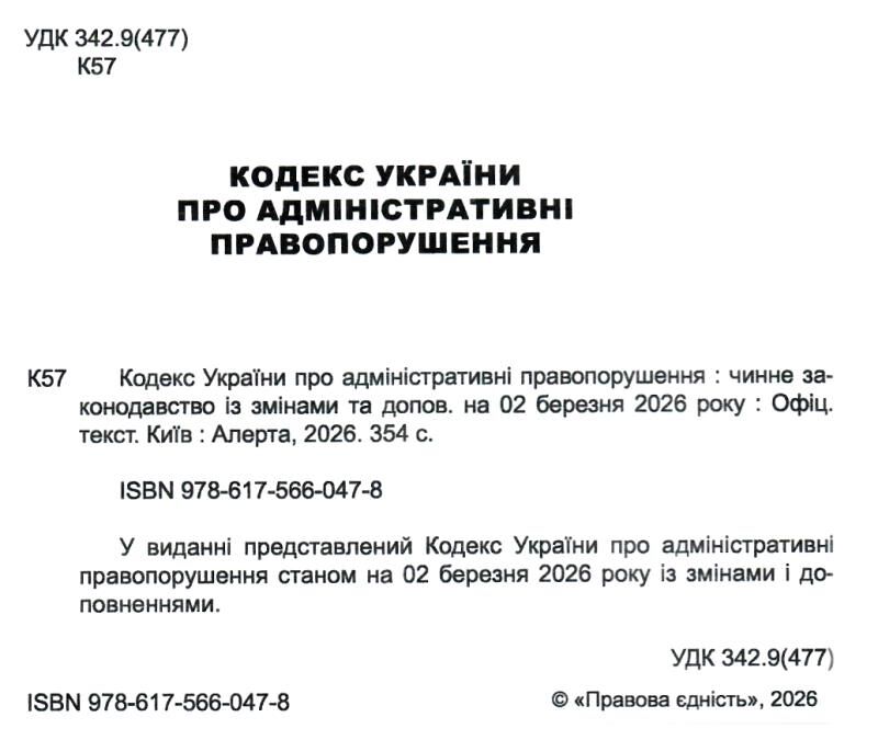 У виданні представлений Кодекс України про адміністративні правопорушення із змінами та доповненнями.