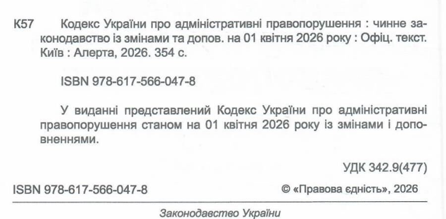 У виданні представлений Кодекс України про адміністративні правопорушення із змінами та доповненнями. остання редакція