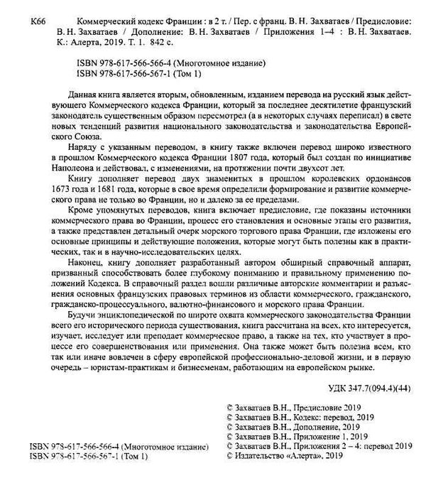 Наряду с указанным переводом, в книгу также включен перевод широко известного в прошлом Коммерческого кодекса Франции 1807 года, который был создан по инициативе Наполеона и действовал, с изменениями, на протяжении почти двухсот лет.