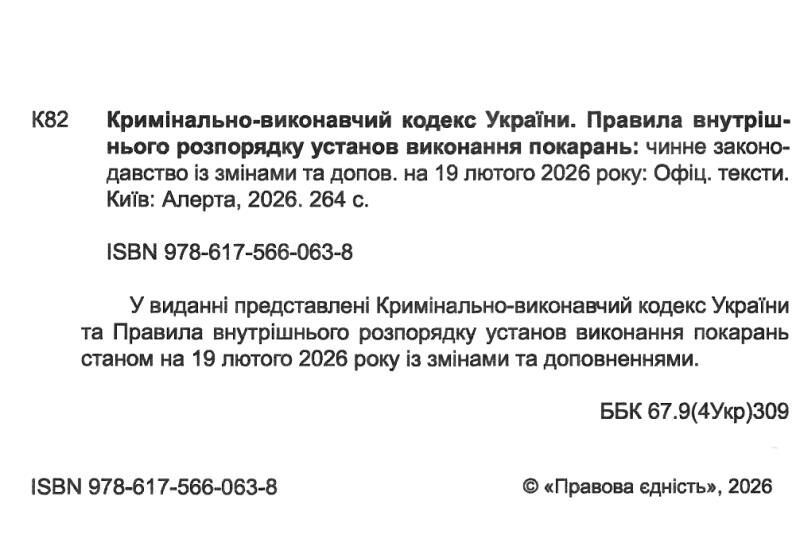 У виданні представлені Кримінально-виконавчий кодекс України та Правила внутрішнього розпорядку установ виконання покарань із змінами і доповненнями.