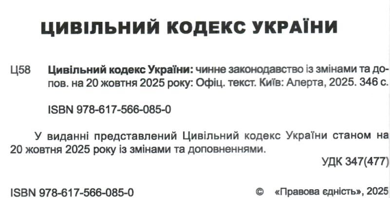 Цивільний кодекс України є кодифікованим нормативним актом (законом) яким регулюються особисті немайнові та майнові відносини (цивільні відносини), учасниками яких є фізичні та юридичні особи, Держава Україна, Автономна Республіка Крим, територіальні громади, іноземні держави та інші суб'єкти публічного права. У даному посібнику зазначені останні зміни у цивільному кодексі, які вказані у назві в дужках.