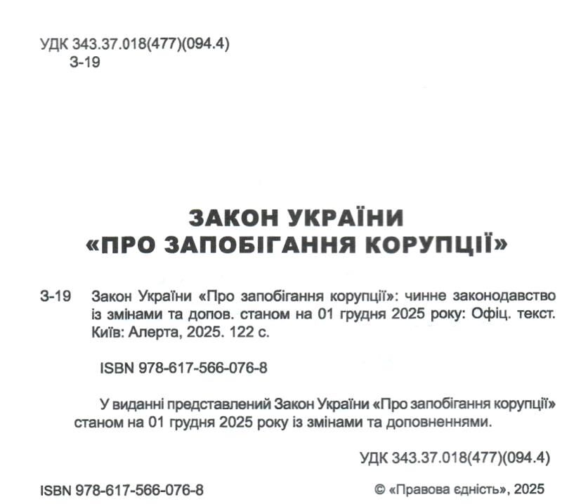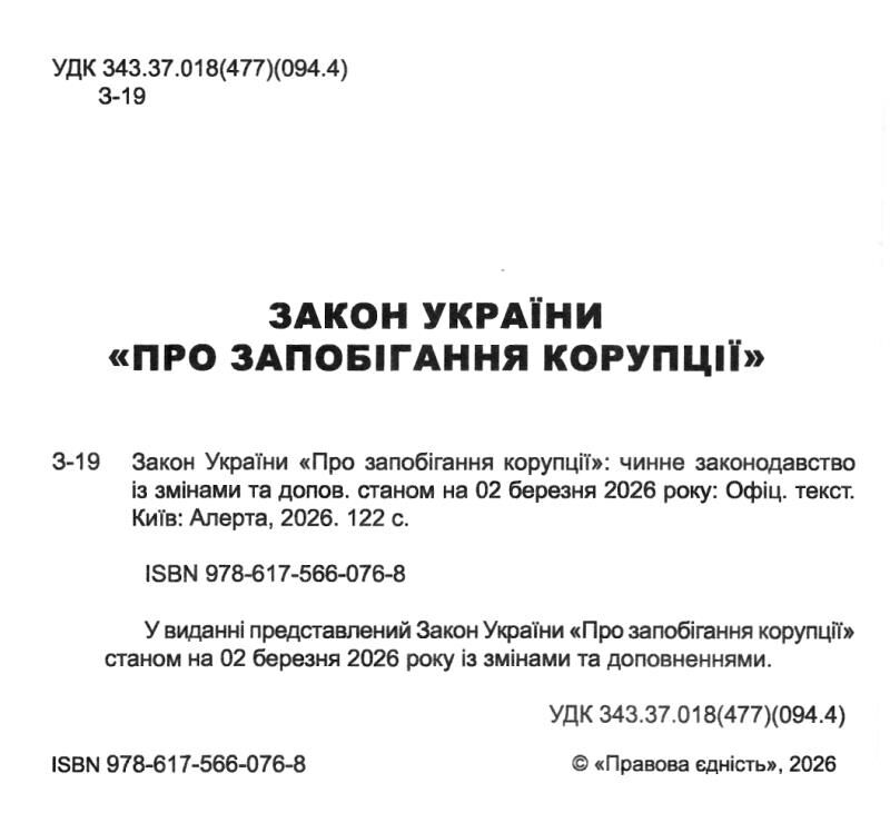 У виданні представлений новий Закон України “Про запобігання корупції” із змінами і доповненнями.