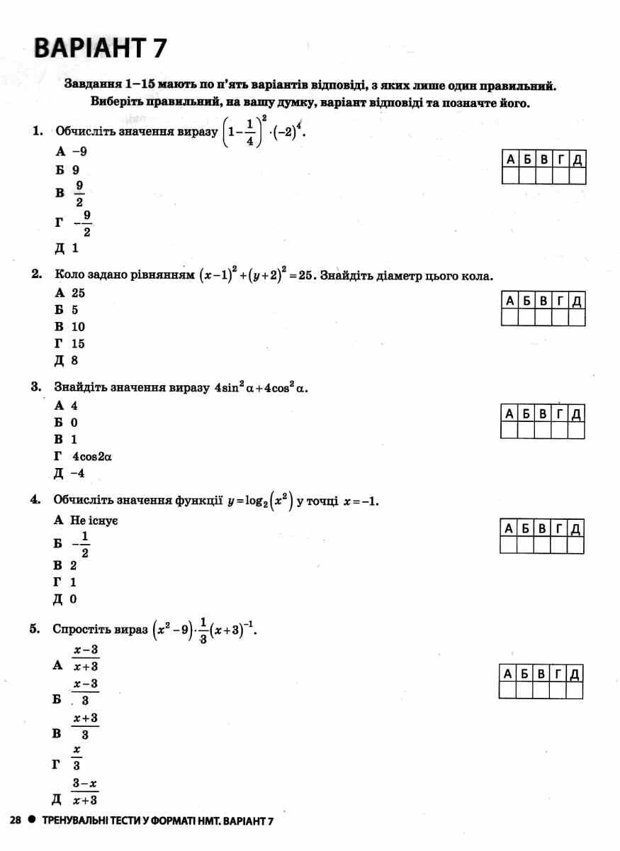 НМТ 2026 математика нмт типові тестові завдання Гальперіна
